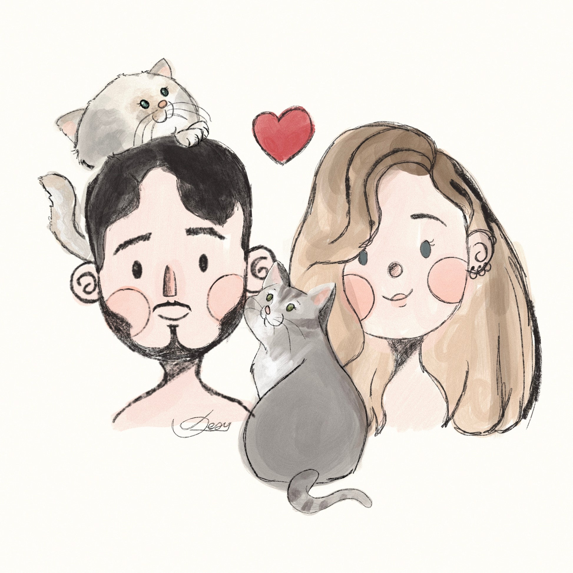 Che sia un ritratto di coppia, la tua famiglia, il tuo amico a quattro zampe o il tuo ex, trasformo la tua foto in un disegno carino carino e originale, curato in ogni dettaglio.